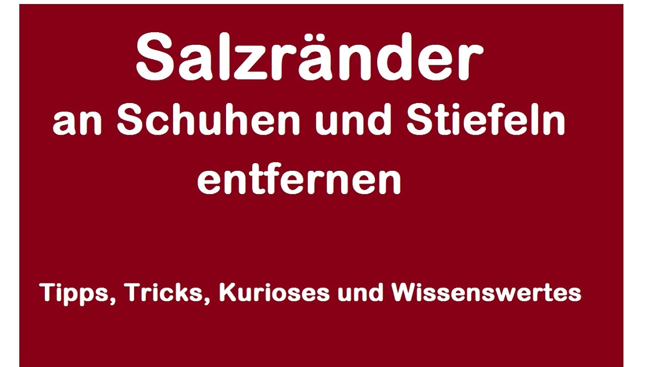 Diese Website benutzt Cookies, die für den technischen Betrieb der Website erforderlich sind und stets gesetzt werden Andere Cookies, die den Komfort bei Benutzung dieser Website erhöhen, der Direktwerbung dienen oder die Interaktion mit anderen Websites und sozialen Netzwerken vereinfachen sollen, werden nur mit Ihrer Zustimmung gesetzt. Im Laufe des es trocknet die Kleidung und es entstehen weiße Salzflecken Ärgerlich sind die Flecken vor allem dann, wenn Sie sich auf empfindlichen Stoffen befinden, die Sie nicht in die Waschmaschine stecken können Generell vermeiden lassen sich die weißen Ränder auf Schuhen. Super ärgerlich Man hat sich die extra teueren Lederschuhe gegönnt, und kaum ist man einmal mit ihnen im Schnee unterwegs, zeichnen sich fiese Salz und Schneeränder ab Wie so oft ist auch hier Vorsorge besser als Nachsorge vor allem auf schwarzem Leder fallen weiße Ränder besonders unschön auf Deshalb sollte man alle Schuhe.