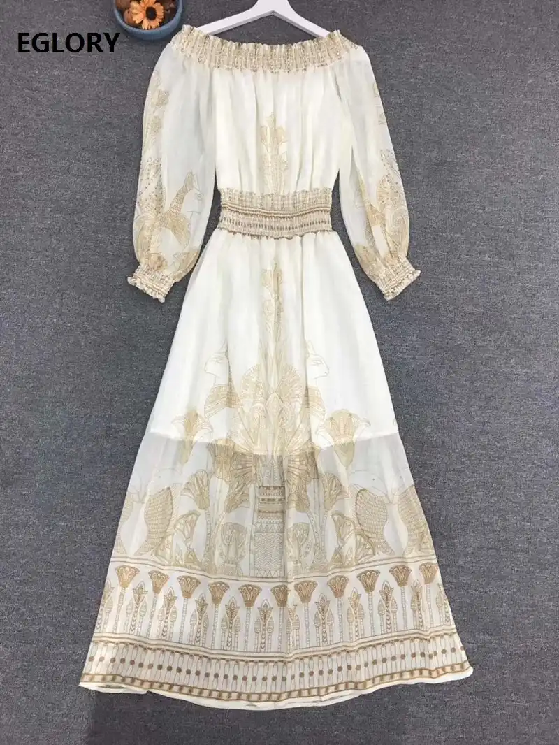 Neueste Mode Lange Kleid Sommer Frauen Sexy Slash Hals Gelb Druck 3 4 Hulse Casual Bohemian Strand Lange Maxi Kleid Damen Kleider Aliexpress