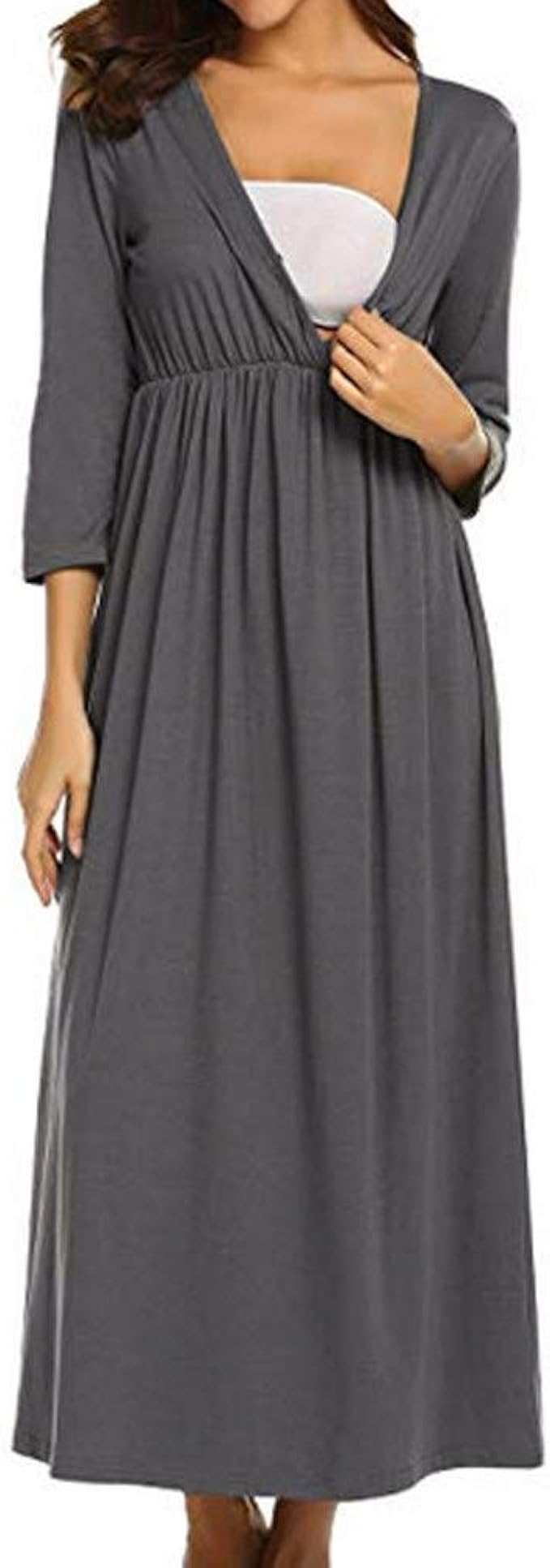 Ufodb Damen Umstandskleid Umstandsmoden 3 4 Armel Lange Schwangerschaftskleider Maternity Kleid Sommer Kleid Stillkleid Stillnachthmd Amazon De Bekleidung