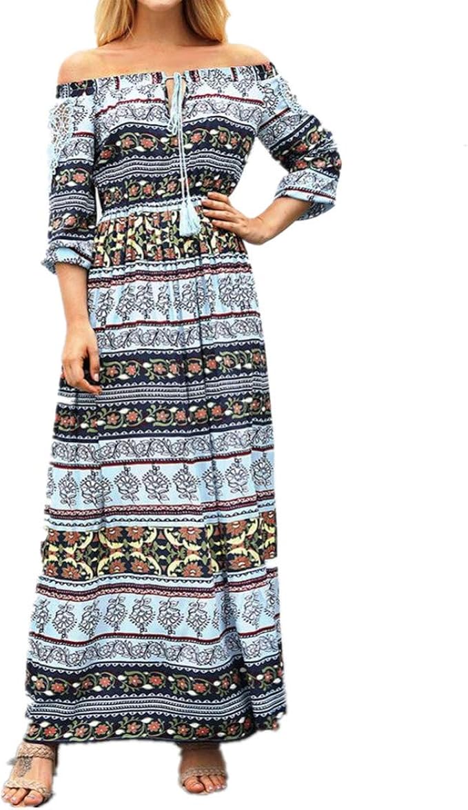 Kleid Kolylong Damen Elegant Tragerlos Blumen Kleid Lang Vintage Drucken Schulterfrei Kleid 3 4 Arm Boho Langarm Maxikleid Strandkleid Retro Swing Kleider Cocktail Party Abendkleid Amazon De Bekleidung
