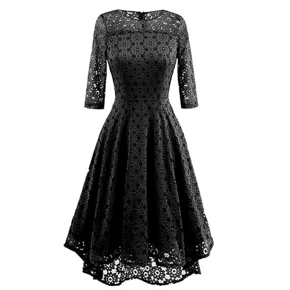 Damen Vintage Rundhals Flare 3 4 Armel Knie Lang A Linie Stickerei Spitze Kleid Party Cocktail Abe Party Kleider Festliche Kleider Knielang Kleid Hochzeitsgast