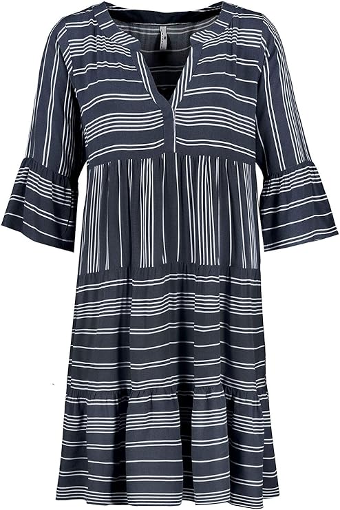 Sublevel Ladies 3 4 Sleeve Dress Damen Kleid Mi Lange Marineblau Weiss Amazon De Bekleidung