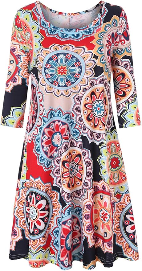 Damen Lose Kleid 3 4 Armel Druck Fruhling Sommer Tuniken Lassig Alltaglich Weiss Rote Gelb Grun S M L Xl Xxl Xxxl Xxxxl Xxxxxl Us 19 99 In Knielange Kleider Modische Kleider Fur Frauen Lange Kleider