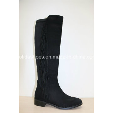 China Neueste Fashion Flat Pu Damen Stiefel Mit Fransen Hersteller