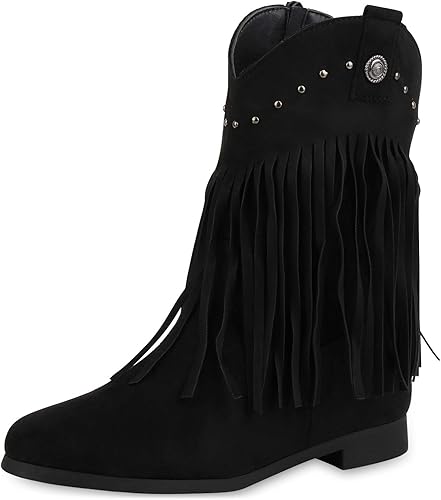 Stiefel Stiefeletten Damen Stiefel Cowboystiefel Wildleder Optik Western Boots Fransen 2427 Trendy Egresadosbottazzi Com Ar