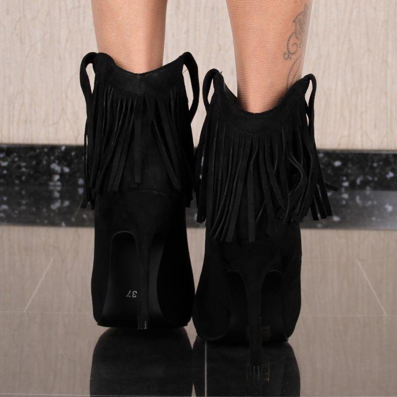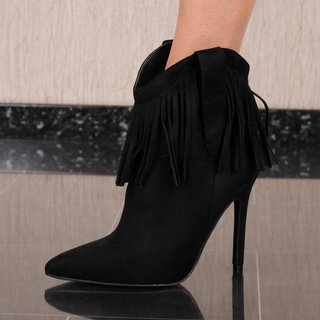 Damen Velours Stiefeletten Mit Fransen Schwarz 34 95