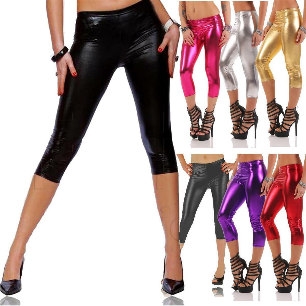 Leggings Metallic Wet Look Lack Leder Optik Gr S M L Xl Xxl 3xl 4xl 05 12 17 Picclick