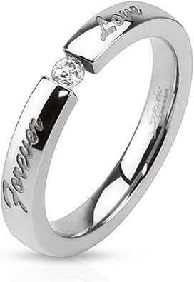 Bungsa Ring Forever Love Eingraviert Edelstahl Silber Hochglanzpoliert Damenring Grosse 49 62 Ring Damen Fingerring Partnerringe Verlobungsringe Trauringe Damenring Edelstahlring Chirurgenstahl Amazon De Bekleidung