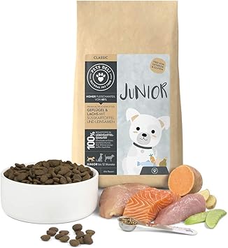 Junior Trockenfutter Fur Welpen 6 Kg Geflugel Lachs Mit Leinsamen Mit 60 Fisch Fleischanteil Getreidefrei Und Ohne Unnotige Zusatze Amazon De Kuche Haushalt