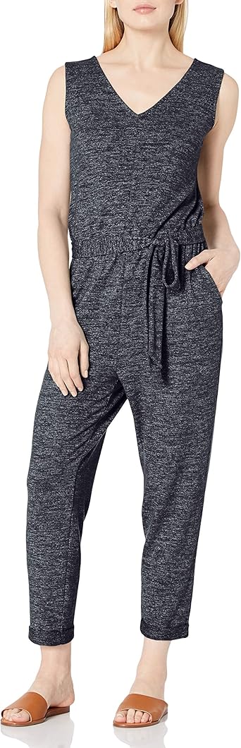 Amazon Com Daily Ritual Women S Cozy Knit Relaxed Fit Sleeveless Tie Waist Jumpsuit Clothing