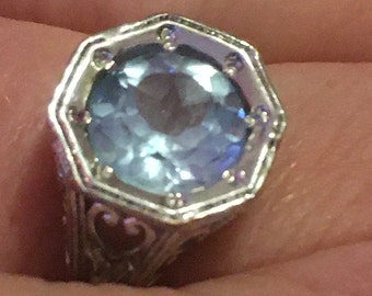 Ca 1960 18 Ct Gold Platinum Ring With One Aquamarine And Diamonds Vintage Englisch Antique Jewellery Berlin Engagement Rings Wedding Bands