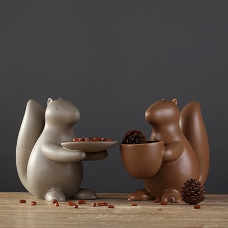 Unibest Dekofiguren Dekoobjekt Aus Porzellan Eichhornchen Grau Mit Teller Amazon De Kuche Haushalt