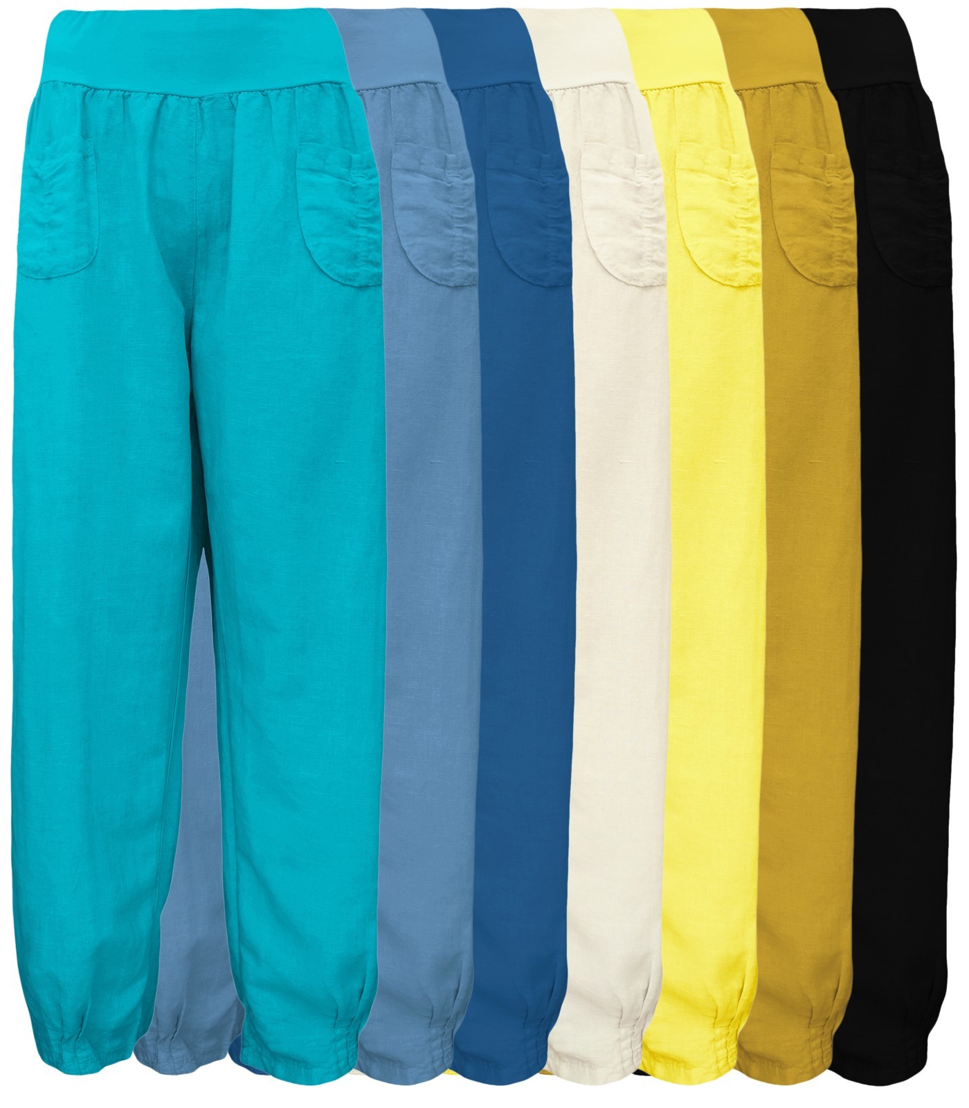 Damen Sommer Hose 100 Leinen Schlupfhose Tunnelbund Komfortgrosse 46 48 48 50