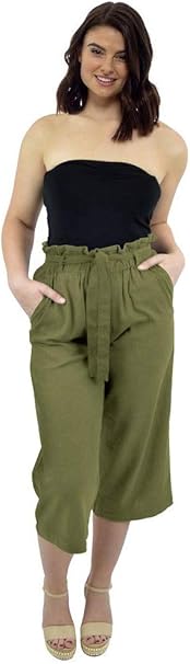 Citycomfort Damen Papiertute Taille 3 4 Lange Sommerhose Aus Leinen Ferien Outfit Fur Frauen Trendy Hohe Taille Mit Falten Umgeschnallt Amazon De Bekleidung
