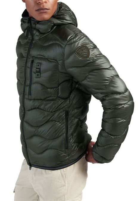 Piumino Blauer Usa Uomo Cappuccio Nylon Corto 667bu Verde Blu Bowdoo Com