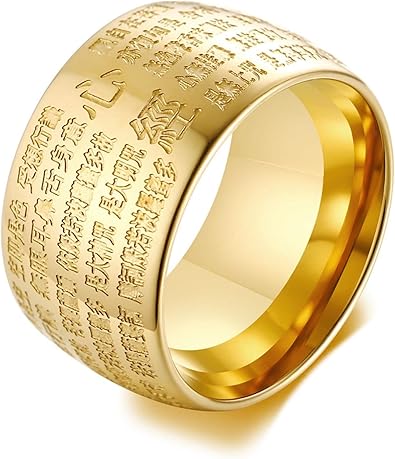 Blisfille Ringe Herren Gold Titan Ring Manner Edelstahl Ring Fur Herren Ehering Gold Buddhistisches Herz Sutra Amazon De Schmuck