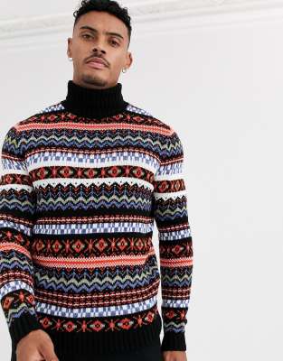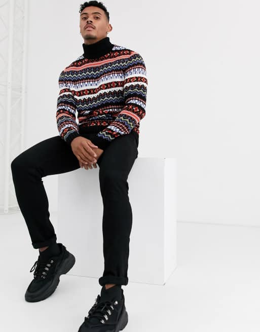 Asos Design Schwarzer Rollkragenpullover Mit Norwegermuster Asos