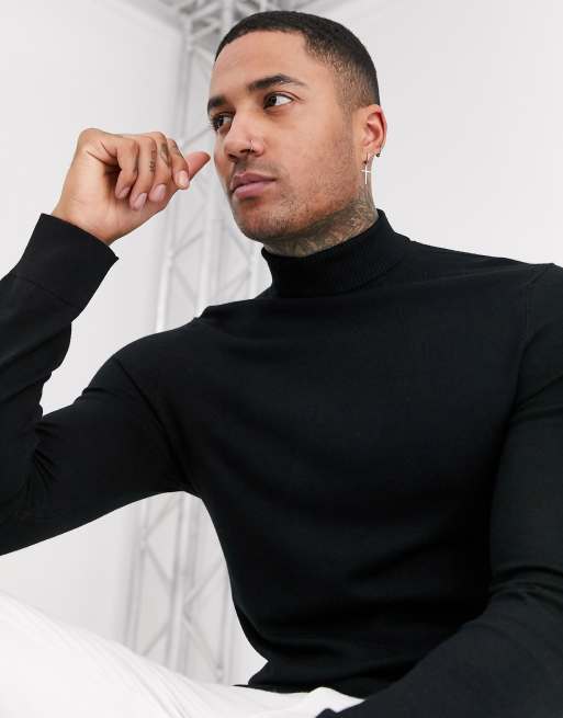 Bershka Schwarzer Rollkragenpullover Mit Muskel Passform Asos