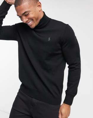 Polo Ralph Lauren Schwarzer Rollkragenpullover Aus Merinowolle Mit Polospieler Logo Herrenmode Suchmaschine Ladendirekt De