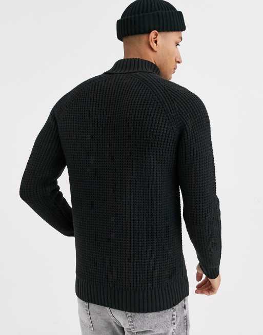 Topman Schwarzer Rollkragenpullover Mit Waffelmuster Asos