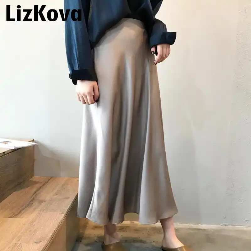 Fruhling Kocheln Frauen Hohe Taille Satin Rock Metallic Farbe Lange Rock Glanzende Seide Nachahmung Midi Rock Rocke Aliexpress