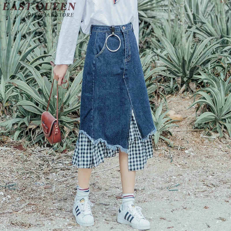 Modische Denim Rocke Knielang Weiblich Sommer Lang Denim Rock Midi Patchwork Mit Plaid Lange Rocke Kk115 Q Denim Skirts Knee Length Long Denim Skirtdenim Skirt Aliexpress