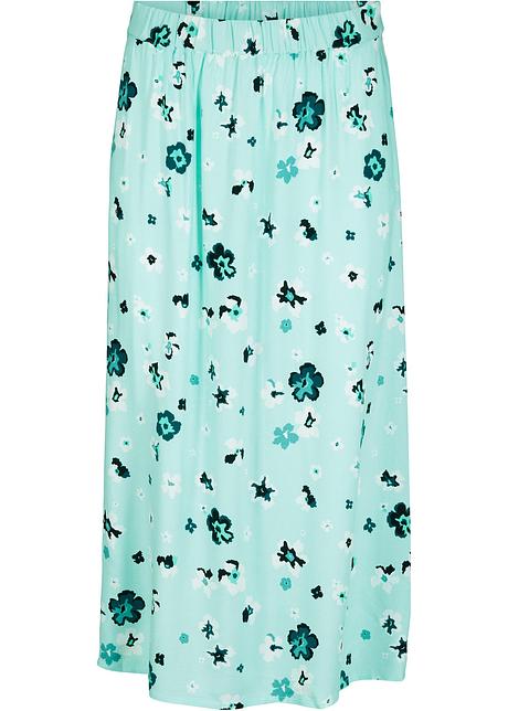 Geblumter Rock Aus Viskose Mit Seitlichem Schlitz Und Elastischem Bund Pastellmint Geblumt
