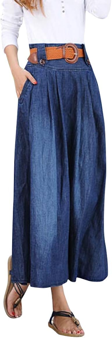 Damen Langer Jeansrock Midi Rock Faltenrocke Amazon De Bekleidung