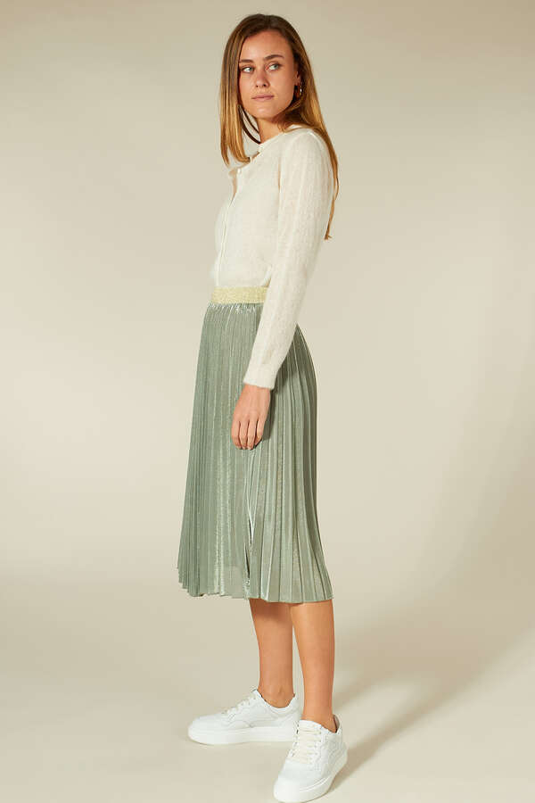 • Midi Länge • Schwingende Weite • Spiel mit unterschiedlichen PlisseeBreiten • CrashEffekt in der Oberfläche • Unser Model ist 1,80 m groß und trägt Größe 36 • Länge in Größe 36 cm • Material 100% Polyester • Enthält nichttextile Teile tierischen Ursprungs.