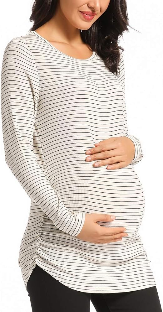 Damen Stillshirt Umstandsshirt Umstandstop Schwangerschaft Umstandsmode T Shirt Langarm Streifen Amazon De Bekleidung