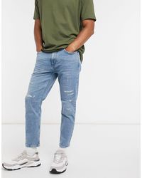Bershka Gerade Geschnittene Vintage Jeans Im Used Look In Blau Evesham Nj