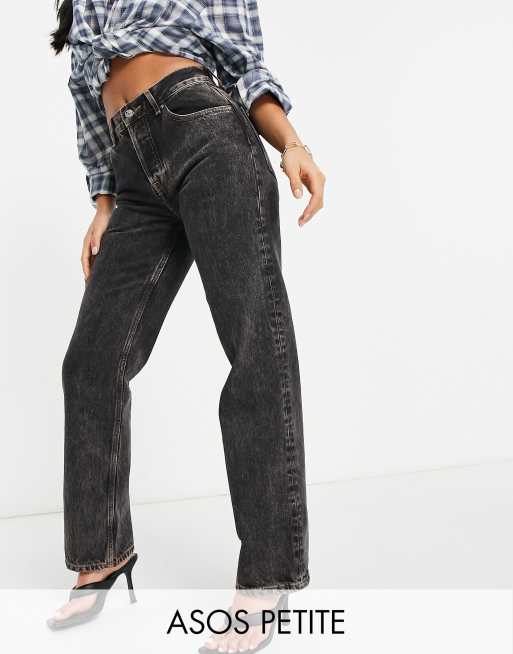 Evesham Nj Design Petite Gerade Geschnittene Jeans Im Stil Der 90er Jahre In Verwaschenem Schwarz Mit Mittelhohem Bund Evesham Nj