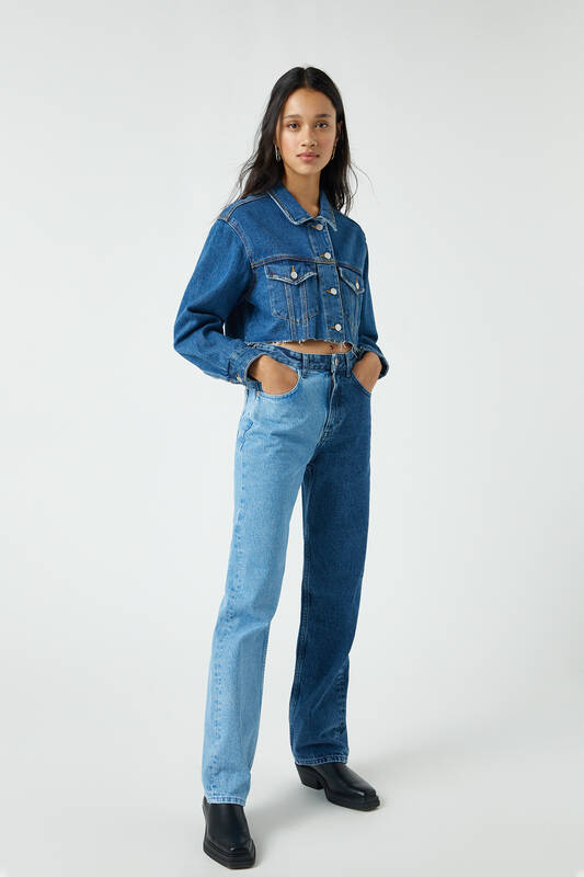 Gerade geschnittene Jeans mit hohem Bund und ColourBlock 3599 Blaue Jeans mit hohem Bund 3599 Gerade geschnittene Jeans in Schwarz mit hohem Bund Deine Jeans findest du bei Pull&Bear In unserer Jeanskollektion sind alle Stilrichtungen und Arten von Damenjeans vertreten, denn wir lieben sie alle. Marke Die in den 90ern gegründete Marke Pull&Bear hält nichts von Stereotypen Mit einem großen Hang zum Streetstyle kreieren Pull&Bear lässige, leicht zu tragende Teile, die für jedes Alter geeignet sind Die Kernkollektion aus Sweatshirts, TShirts und Jeans wird durch eine coole Linie aus Accessoires, indigoblauem Denim und Bikerjacken ergänzt. Die Hosen für Damen von PULL&BEAR sind ein Muss im Herbst Winter !.