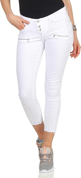 Damen Jeans Jeans Weiss Kurzgr 42 21 Zipper 7 8 Stretchjeans Enge Stretch Hose Gr Omnia Ae