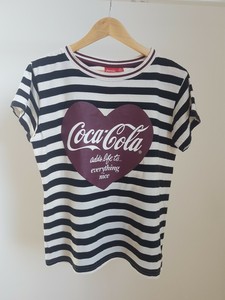 Shirt T Shirt Coca Cola 38 M Schwarz Weiss Gestreift Streifen Lila Aufdruck Print Ebay