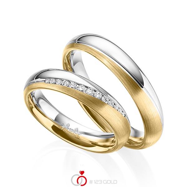 Paar Bicolor Trauringe Eheringe In Weissgold 375 Gelbgold 375 Mit Zus 0 14 Ct Brillant Tw Si Von Steinberg