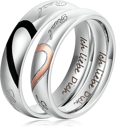 Aooaz 2 X Edelstahl Eheringe Partnerringe Trauringe Silber Ringe Mit Gravur Herz Ringe Rosegold Schwarz Ringe Fur Sie Und Ihn Damen 49 15 6 Herren 57 18 1 Amazon De Schmuck