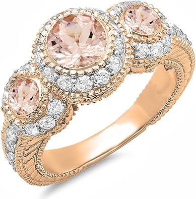 Damen Ring 14 Karat Rose Gold Rund Echte Morganite Diamant Vintage Verlobungsring 3 Stein Ring Amazon De Schmuck
