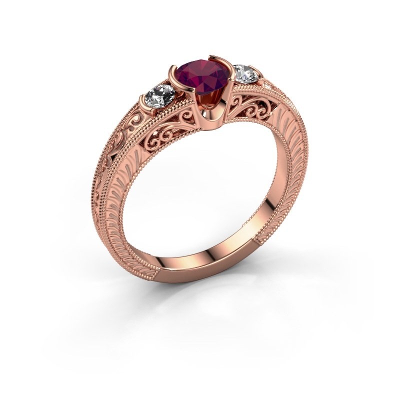 Vintage Filigrane Rosegold Verlobungsring Mit 5 Mm Rhodolit Julliana 30