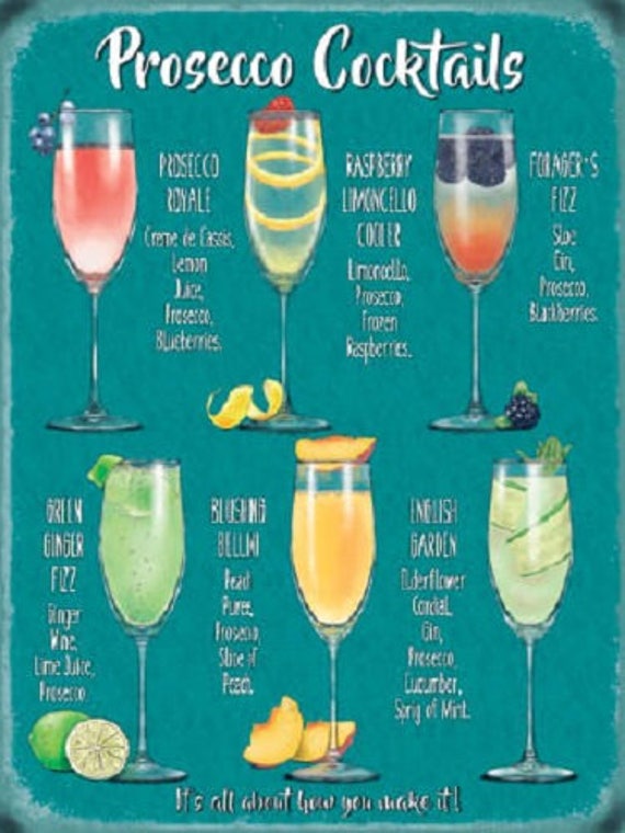 Prosecco Cocktails Wine Glass Drink Pub Tiki Bar Kitchen Small Etsy