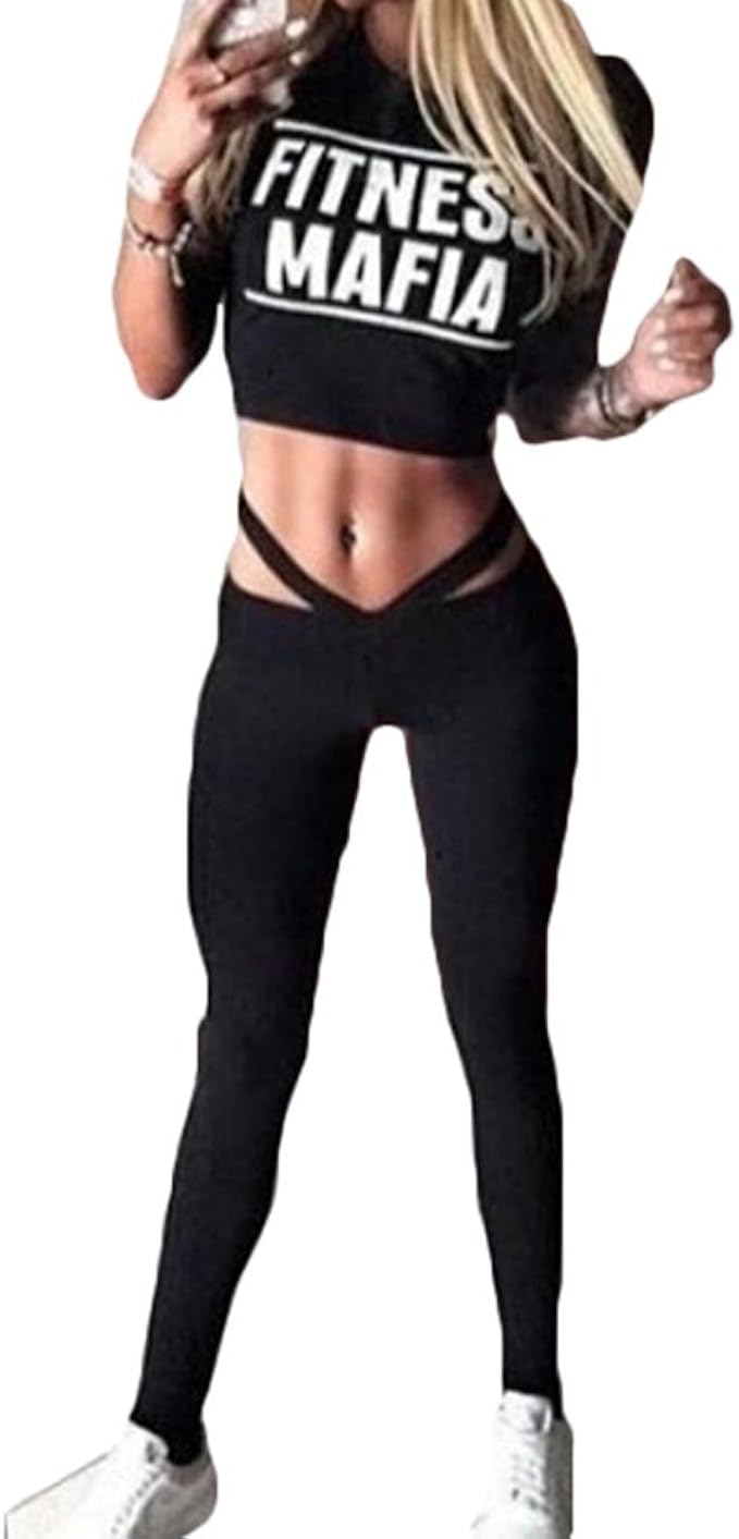 Meedot 2 Stuck Damen Fitness Anzug Sport Yoga Gymnastik Trainingsanzug Kleidung Set Outfits Frauen Sportwear Kurzarmshirt Lang Hose Leggings Laufhose Schwarz L Amazon De Bekleidung