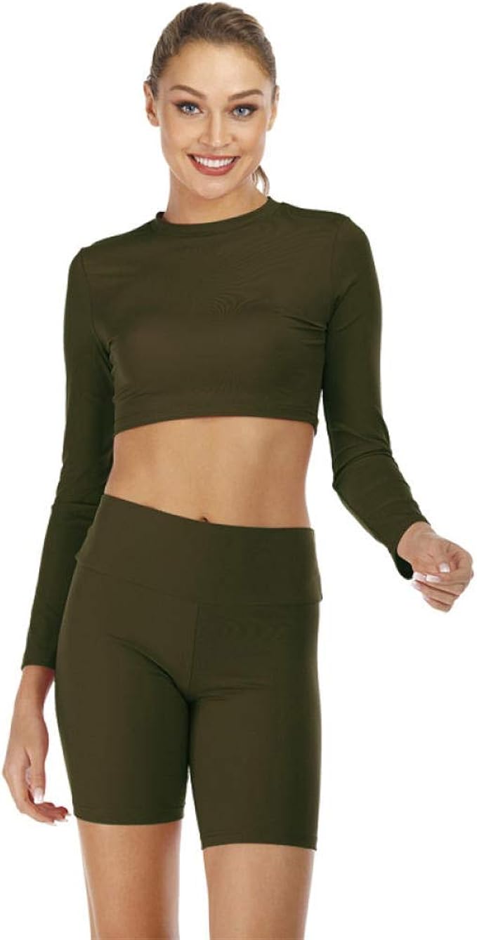 Wksee Fitness Kleidung Gym Shorts Set Frauen Langarm Crop Top Nahtlose Shorts Sport Set Gym Frauen Workout Outfit Gym Sets Damen Sportswear Amazon De Bekleidung