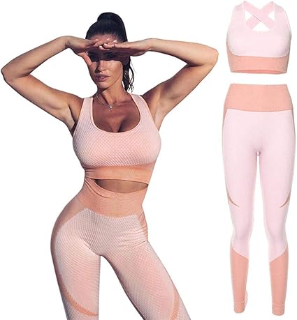 Evergreemi 2 Teilige Yoga Fitness Outfits Fur Frauen Nahtlose Elastische Leggings Und Ruckenfreier Sport Bh Yoga Anzug Fur Fitness Yoga Enthusiasten Amazon De Sport Freizeit