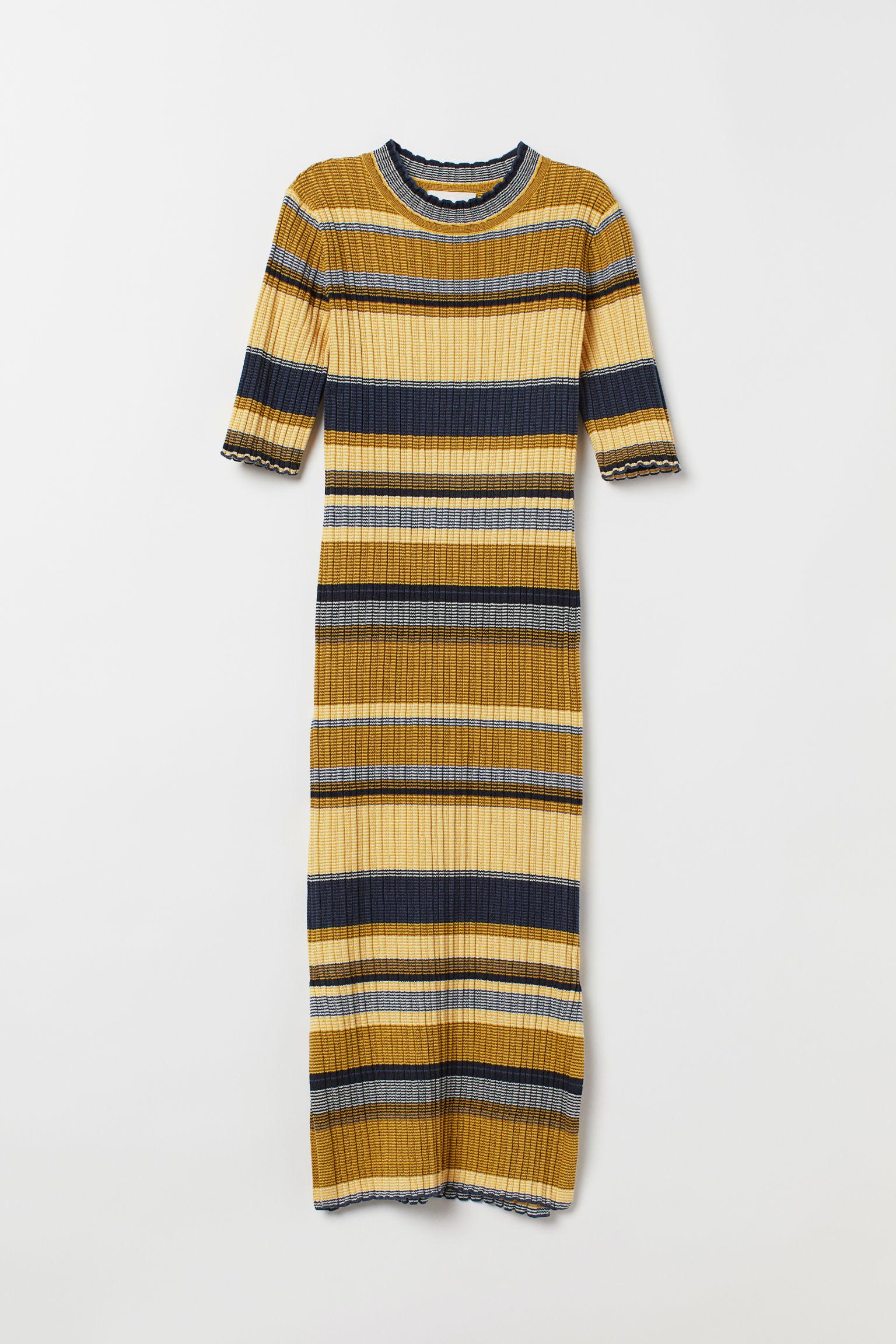 H M Baumwolle Geripptes Kleid In Gelb Lyst