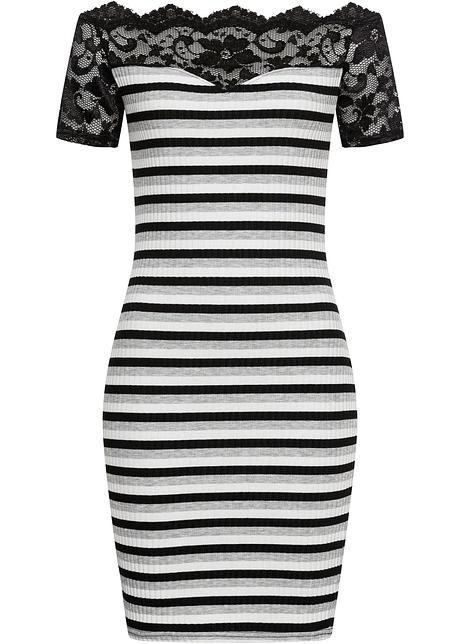 RippCarmenKleid mit Spitze schwarz/weiß gestreift BODYFLIRT boutique jetzt im Online Shop von bonprixde ab € 18,99 bestellen Länge bei Gr36/38 ca 90cm. Dieses Top hat eine enge Passform, ein Rippendesign, einen VAusschnitt und eine elastische Passform. Weiße Langarmkleider bei LadenZeilede Riesige Auswahl an neuesten Fashion Trends für jeden Anlass!.