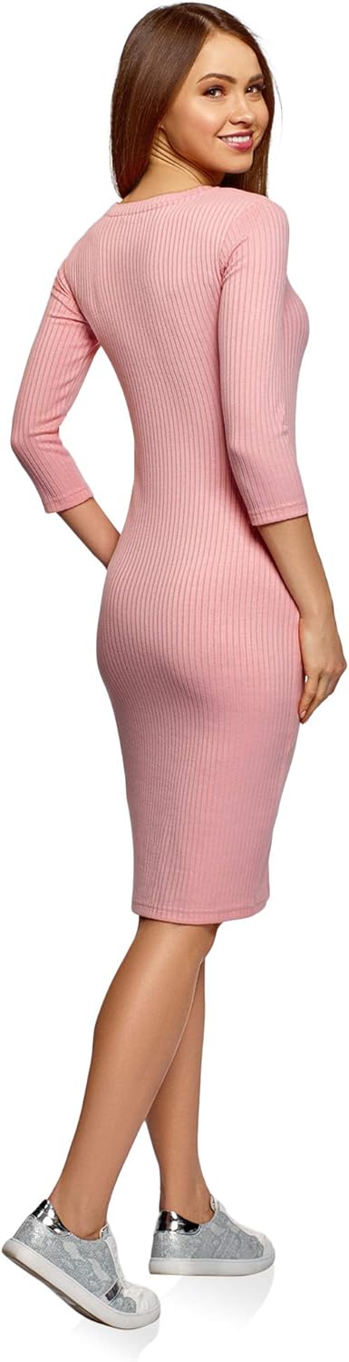 Kleider Oodji Ultra Damen Geripptes Kleid Mit 3 4 Armeln Bekleidung Impas Es