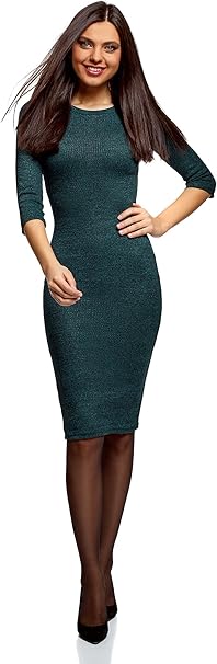 Oodji Ultra Damen Mittellanges Geripptes Kleid Grun De 42 Eu 44 Xl Amazon De Bekleidung