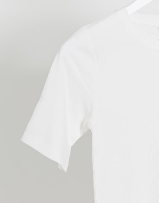 Pull Bear Weisses Geripptes Jersey Kleid Mit Gekrauseltem Saum Asos