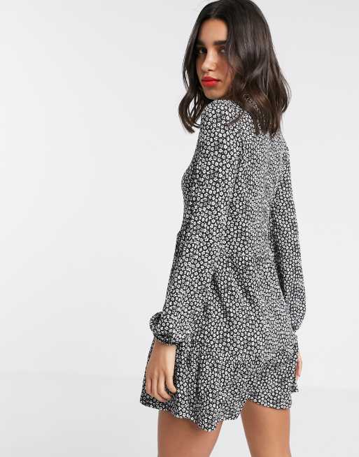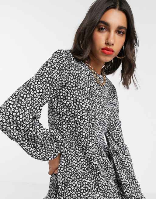 Stradivarius Geripptes Kleid Mit Blumenmuster In Schwarz Und Weiss Asos