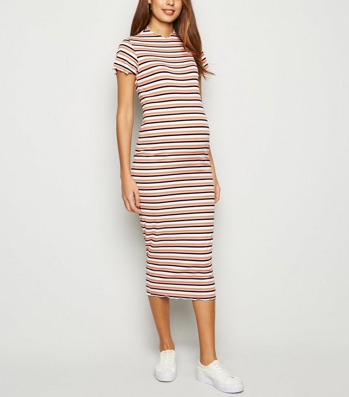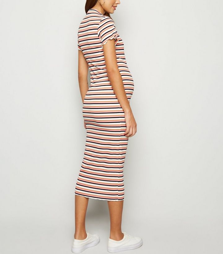 Umstandsmode Geripptes Figurbetontes Kleid In Weiss Mit Streifen New Look